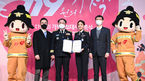 [OSEN=김성락 기자] 3일 오후 인천 미추홀구 주안동 인천광역시 소방본부에서 '119원의 기적' 홍보대사 위촉식 및 커블체어 119원의 기적 동참 행사가 열렸다.이일 인천소방본부 본부장, 배우 오승아가 기념촬영을 하고 있다. 2021.12.
