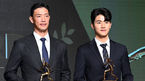 [OSEN=조은정 기자] 7일 오후 서울 서대문구 홍은동 스위스그랜드호텔 그랜드볼룸에서 '하나원큐 K리그1 2021 대상 시상식'이 열렸다.MVP 수상한 전북 홍정호, 영플레이어상을 수상한 울산 설영우가 포즈를 취하고 있다. 2021.12.07 /cej