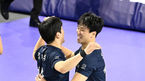 [OSEN=인천, 최규한 기자] 30일 오후 인천 계양체육관에서 ‘도드람 2021-2022 V리그’ 남자부 대한항공과 현대캐피탈의 경기가 열렸다.듀스 승부 끝에 1세트를 따낸 대한항공 정지석과 임동혁이 득점에 기뻐하고 있다. 2021.12.30