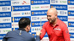 [OSEN=일산(고양), 민경훈 기자] 3일 오후 경기도 고양시 장항동 빛마루 방송지원센터에서 'NH농협카드 PBA-LPBA 챔피언십 21-22' PBA 16강전 경기가 열렸다.경기에서 승리한 조재호에게 위마즈가 축하 인사를 하고 있다. 2022.01.03 /rumi@ose