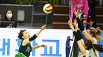 [OSEN=수원, 지형준 기자] 4일 오후 수원 실내체육관에서 2021-2022 도드람 V-리그 여자부 정규리그 현대건설과 KGC인삼공사의 경기가 열렸다.3세트 현대건설 황민경이 인삼공사 정호영, 옐레나의 블로킹을 피해 연타를 날리고 있다. 2