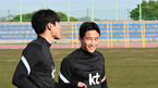 [OSEN=제주(서귀포), 민경훈 기자] 10일 오후 황선홍 감독이 이끄는 U-23 축구대표팀이 제주 서귀포시 공천포 전지훈련 센터내 운동장에서 동계 훈련을 가졌다.U-23 대표팀 이태석과 정상빈이 즐겁게 훈련을 하고 있다. 2022.01.10 /rumi@o
