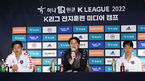[OSEN=제주(서귀포), 민경훈 기자] 11일 오후 제주 서귀포 빠레브 호텔 기자회견장에서 K리그 동계 전지훈련 미디어캠프가 진행됐다.수원FC 김도균 감독과 이승우, 박주호가 기자회견을 하고 있다. 2022.01.11 /rumi@osen.co.kr