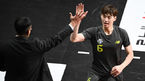 [OSEN=안산,박준형 기자] 11일 오후 경기도 안산시 상록수체육관에서 ‘도드람 2021-2022 V-리그’ 남자부 안산 OK금융그룹과 천안 현대캐피탈의 경기가 진행됐다.1세트 현대캐피탈 김선호가 득점 후 최태웅 감독과 하이파이브