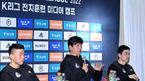 [OSEN=제주(서귀포), 민경훈 기자] 12일 오후 제주 서귀포 빠레브 호텔 기자회견장에서 K리그 동계 전지훈련 미디어캠프가 진행됐다.서울 이랜드 정정용 감독과 김인성, 윤보상이 기자회견을 하고 있다. 2022.01.12 /rumi@osen.co.kr
