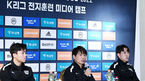 [OSEN=제주(서귀포), 민경훈 기자] 12일 오후 제주 서귀포 빠레브 호텔 기자회견장에서 K리그 동계 전지훈련 미디어캠프가 진행됐다.포항 김기동 감독과 신진호, 정재희가 기자회견을 하고 있다. 2022.01.12 /rumi@osen.co.kr