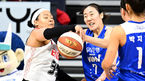 [OSEN=아산, 김성락 기자] 13일 오후 충청남도 아산시 풍기동 이순신종핣운동장에서 '삼성생명 2021-22 여자프로농구' 우리은행 우리WON과 BNK 썸의 경기가 열렸다.1쿼터, 우리은행 최이샘이 슛블록하고 있다. 2022.01.13 /ksl0919@osen.co.kr