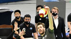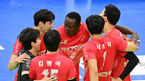 [OSEN=수원, 민경훈 기자] 13일 오후 수원 실내체육관에서 ‘2021-2022 도드람 V-리그’ 남자부 한국전력과 대한항공의 경기가 열렸다.2세트 공격에 성공한 한국전력 선수들이 기뻐하고 있다. 2022.01.13 / rumi@osen.co.kr