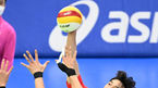 [OSEN=수원, 민경훈 기자] 13일 오후 수원 실내체육관에서 ‘2021-2022 도드람 V-리그’ 남자부 한국전력과 대한항공의 경기가 열렸다.2세트 대한항공 정지석의 강타가 상대 블로킹에 걸리고 있다. 2022.01.13 / rumi@osen.co.kr