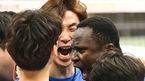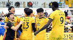 [OSEN=의정부, 조은정 기자] 16일 오후경기도 의정부 실내체육관에서 ‘도드람 2021~2022시즌 V-리그' KB손해보험과 한국전력의 경기가 열렸다.4세트 KB손해보험 선수들이 케이타의 서브 득점에 기뻐하고 있다. 2022.01.16 /cej@osen.co.kr