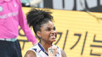 [OSEN=장충,박준형 기자] 20일 오후 서울 장충체육관에서 도드람 2021~2022 V-리그 여자부 GS칼텍스와 한국도로공사의 경기가 진행됐다.1세트 GS칼텍스 모마가 득점 후 환호하고 있다. 2022.01.20 / soul1014@osen.co.kr