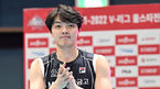 [OSEN=광주, 조은정 기자] 23일 오후 광주 페퍼스타디움에서 '도드람2021~2022' V리그 올스타전이 열렸다.서브 킹 컨테스트에서 우승을 차지한 조재성이 박수를 치고 있다. 2022.01.23 /cej@osen.co.kr