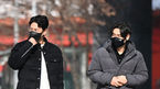 [OSEN=최규한 기자] 26일 오후 서울 목동 SBS에서 라디오 ‘두시탈출 컬투쇼’가 진행된다.배우 설경구와 이선균이 게스트로 나서 출근하며 인사를 전하고 있다. 2022.01.26 / dreamer@osen.co.kr