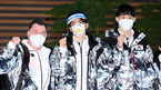 [OSEN=인천공항, 조은정 기자] 3일 오전 ‘2022 베이징 동계올림픽’에 출전하는 대한민국 대표팀이 인천국제공항을 통해 중국으로 출국했다.피겨 대표팀 오서 코치, 차준환, 이시형이 출국 전 포즈를 취하고 있다. 2022.02.03 /