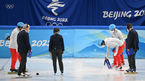 [OSEN=베이징(중국), 지형준 기자] 11일(한국시간) 중국 베이징 캐피털 실내경기장에서 2022 베이징 동계올림픽 쇼트트랙 여자 1000m B파이널 경기가 열렸다.경기 후 경기장 요원들이 정빙을 하고 있다. 2022.02.11 /jpnews@osen.co.kr