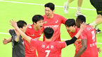 [OSEN=수원, 민경훈 기자] 12일 오후 수원 실내체육관에서 ‘2021-2022 도드람 V-리그’ 남자부 한국전력과 KB손해보험의 경기가 열렸다.1세트 공격에 성공한 한국전력 선수들이 기뻐하고 있다. 2022.02.12 / rumi@osen.co.kr