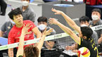 [OSEN=수원, 민경훈 기자] 12일 오후 수원 실내체육관에서 ‘2021-2022 도드람 V-리그’ 남자부 한국전력과 KB손해보험의 경기가 열렸다.2세트 한국전력 서재덕이 강타를 날리고 있다. 2022.02.12 / rumi@osen.co.kr