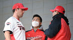[OSEN=함평, 조은정 기자] KIA 타이거즈 스프링캠프가 18일 전라남도 함평 KIA챌린저스필드에서 진행됐다.KIA 놀린이 서재응 코치와 대화를 나누고 있다. 2022.02.18 /cej@osen.co.kr