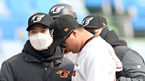 [OSEN=대전, 김성락 기자] 1일 대전 한화생명이글스파크에서 자체 청백전이 열렸다. 이날 청백전은 한화 KBO 팀과 퓨처스 팀으로 진행됐다.이날 경기는 2-2 무승부를 거뒀다.6회 KBO 변우혁이 3루 수비 중 허리 통증을 호소하며 교체