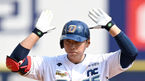 [OSEN=창원, 김성락 기자] 4일 오후 창원시 NC파크에서 NC 다이노스와 LG 트윈스의 연습경기가 열렸다.8회말 1사 2, 3루 NC 김한별이 2타점 적시 3루타를 날린 뒤 기뻐하고 있다. 2022.03.04 /ksl0919@osen.co.kr