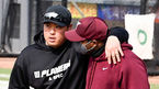 [OSEN=대전,박준형 기자] 4일 오후 대전 한화생명이글스파크에서 2022시즌 프로야구를 준비하는 한화 이글스와 키움 히어로즈의 연습경기가 진행된다.경기 앞서 류현진이 푸이그의 머리를 때리며 장난을 치고 있다. 2022.03.04 / soul1