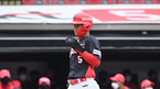 [OSEN=수원,박준형 기자] 17일 경기도 수원시 수원KT위즈파크에서 2022 KBO리그 시범경기 KT 위즈와 KIA 타이거즈의 경기가 진행됐다.7회초 1사 2루 KIA 김도영이 동점 1타점 적시 2루타를 날리고 타임을 요청하고 있다. 2022.03.17 / soul1014@o