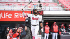 [OSEN=수원,박준형 기자] 17일 경기도 수원시 수원KT위즈파크에서 2022 KBO리그 시범경기 KT 위즈와 KIA 타이거즈의 경기가 진행됐다.5회초 KT 선두타자 라모스가 동점 솔로홈런을 날리고 타구를 바라보고 있다. 2022.03.17 / soul1014@osen.co.k