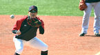 [OSEN=부산, 최재현 기자] 22일 부산 사직구장에서 2022 신한은행 SOL 2021 신한은행 SOL KBO리그 롯데 자이언츠와 NC 다이노스의 시범경기가 열린다.롯데 고승민이 경기 전 훈련 도중 라이언 롱 코치의 조언을 듣고 있다. 2022.03.22 /hyun309