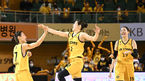 [OSEN=청주, 최규한 기자] 31일 오후 충북 청주체육관에서 ‘삼성생명 2021-22 여자프로농구’ 플레이오프 1차전 KB스타즈와 BNK의 경기가 열렸다.3쿼터, KB스타즈 최희진이 3점슛을 성공시킨 뒤 허예은과 기뻐하고 있다. 2022.03.31