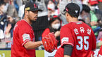 [OSEN=창원, 이석우 기자] 2일 창원 NC파크에서 ‘2022 신한은행 SOL KBO리그’ 개막전 NC 다이노스와 SSG 랜더스의 경기가 열렸다.SSG 폰트가 연장 10회초 희생타를 친 최정과 기쁨을 나누고 있다. 2022.04.02 / foto0307@osen.co.kr