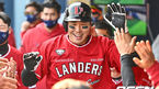[OSEN=고척, 민경훈 기자] 3일 오후 서울 고척스카이돔에서 '2022 신한은행 SOL KBO 리그' 키움 히어로즈와 롯데 자이언츠의 경기가 열렸다.8회초 2사 주자 1,3루 롯데 정훈의 좌익수 앞 동점 1타점 적시타때 홈을 밟은 전준우가 덕아웃