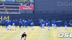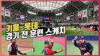 [OSEN=고척, 민경훈 기자] 3일 오후 서울 고척스카이돔에서 '2022 신한은행 SOL KBO 리그' 키움 히어로즈와 롯데 자이언츠의 경기가 열릴 예정인 가운데 그라운드 위에서 양 팀 선수들이 훈련을 하고 있다. 2022.04.03 /rumi@osen.co.kr