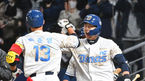 [OSEN=창원, 이석우 기자] 5일 창원 NC파크에서 ‘2022 신한은행 SOL KBO리그’ NC 다이노스와 롯데 자이언츠의 경기가 열렸다.NC 다이노스 박준영이 4회말 좌월 솔로 홈런을 치고 박건우의 축하를 받고 있다. 2022.04.05 / foto0307@osen.