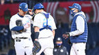 [OSEN=창원, 이석우 기자] 5일 창원 NC파크에서 ‘2022 신한은행 SOL KBO리그’ NC 다이노스와 롯데 자이언츠의 경기가 열렸다.NC 다이노스 손민한 코치가 4회초 무사 만루 실점 위기에서 마운드에 올라가고 있다. 2022.04.05 / foto0307