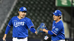 [OSEN=잠실, 지형준 기자] 6일 서울 잠실야구장에서 ‘2022 신한은행 SOL KBO리그’ 두산 베어스와 삼성 라이온즈의 경기가 열렸다.5회말 수비를 마친 삼성 양창섭이 최영진과 기뻐하고 있다. 2022.04.06 /jpnews@osen.co.kr