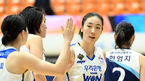 [OSEN=인천, 조은정 기자] 7일 오후 인천도원체육관에서 삼성생명 2021~2022 여자프로농구 신한은행과 우리은행의 플레이오프 2차전이 진행됐다.3쿼터 한채진의 3점슛에 신한은행 선수들이 기뻐하고 있다. 2022.04.07 /cej@osen.co.kr