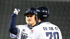 [OSEN=잠실, 지형준 기자] 7일 서울 잠실구장에서 2022 신한은행 SOL KBO리그 두산 베어스와 삼성 라이온즈의 경기가 열렸다.8회말 2사 1,3루에서 두산 김인태가 역전 1타점 중전 적시타를 날리고 기뻐하고 있다. 2022.04.07 /jpnews@osen.co.kr