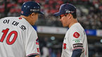 [OSEN=부산, 이석우 기자] 9일 부산 사직구장에서 ‘2022 신한은행 SOL KBO리그’ 롯데 자이언츠와 두산 베어스의 경기가 열렸다.롯데 자이언츠 박세웅이 7회초 수비를 마치고 이대호와 손을 잡고 얘기하고 있다. 2022.04.09 / foto0
