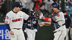 [OSEN=부산, 이석우 기자] 9일 부산 사직구장에서 ‘2022 신한은행 SOL KBO리그’ 롯데 자이언츠와 두산 베어스의 경기가 열렸다.롯데 자이언츠 최준용이 두산 베어스를 5-4로 이긴 후 정보근과 기쁨을 나누고 있다. 2022.04.09 / fo
