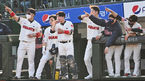 [OSEN=부산, 이석우 기자] 9일 부산 사직구장에서 ‘2022 신한은행 SOL KBO리그’ 롯데 자이언츠와 두산 베어스의 경기가 열렸다.롯데 선수들이 1회말 이대호의 적시타 때 세리머니를 하고 있다. 2022.04.09 / foto0307@osen.co.kr