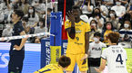 [OSEN=인천, 지형준 기자] 9일 오후 인천 계양체육관에서 ‘도드람 2021-2022 V-리그’ 챔피언결정전 대한항공과 KB손해보험의 3차전이 열렸다.3세트 KB 박진우가 대한항공 곽승석의 강타를 블로킹하고 있다. 2022.04.09 /jpnews@osen.co