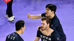 [OSEN=인천, 지형준 기자] 9일 오후 인천 계양체육관에서 ‘도드람 2021-2022 V-리그’ 챔피언결정전 대한항공과 KB손해보험의 3차전이 열렸다.1세트 대한항공 링컨이 서브 에이스에 동료선수들과 기뻐하고 있다. 2022.04.09 /jpnews