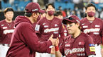 [OSEN=부산, 이석우 기자] 9일 부산 사직구장에서 ‘2022 신한은행 SOL KBO리그’ 롯데 자이언츠와 두산 베어스의 경기가 열렸다.롯데 자이언츠 래리 서튼 감독이 두산 베어스를 5-4로 이긴 후 선수들과 기쁨을 나누고 있다. 2022.