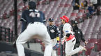 [OSEN=인천, 최규한 기자] 19일 오후 인천 SSG랜더스필드에서 ‘2022 신한은행 SOL KBO리그’ SSG 랜더스와 키움 히어로즈의 경기가 열렸다.7회말 2사 만루 상황 SSG 크론이 삼진으로 물러난 뒤 아쉬워하고 있다. 2022.04.19 / dreamer@ose