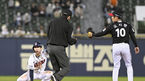 [OSEN=잠실, 최규한 기자] 23일 오후 서울 잠실야구장에서 ‘2022 신한은행 SOL KBO리그’ 두산 베어스와 LG 트윈스의 경기가 열렸다.8회말 1사 1루 상황 두산 김재환 타석 때 2루 도루에 실패한 대주자 조수행이 벤치를 향해 비디