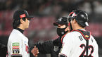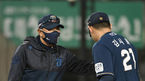 [OSEN=잠실,박준형 기자] 28일 오후 서울 잠실구장에서 ‘2022 신한은행 SOL KBO리그’ 두산 베어스와 NC 다이노스의 경기가 진행됐다.5회말 NC 손민한 투수 코치가 마운드에 올라 김시훈을 다독이고 있다. 2022.04.28 / soul1014@osen.co.