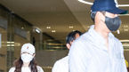 [OSEN=인천공항, 민경훈 기자] 배우 현빈, 손예진 부부가 신혼여행을 마치고 28일 오후 인천 중구 운서동 인천국제공항 제 2여객터미널을 통해 미국에서 입국했다.배우 현빈이 입국하며 취재진에게 사인을 보내고 있다. 2022.04.28 /ru