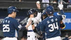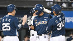 [OSEN=잠실,박준형 기자] 28일 오후 서울 잠실구장에서 ‘2022 신한은행 SOL KBO리그’ 두산 베어스와 NC 다이노스의 경기가 진행됐다.3회초 2사 1,3루 NC 박준영이 3점 홈런을 날린뒤 동료들의 축하를 받고 있다. 2022.04.28 / soul1014@o