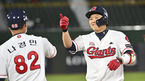 [OSEN=부산, 이석우 기자] 28일 부산 사직구장에서 ‘2022 신한은행 SOL KBO리그’ 롯데 자이언츠와 SSG 랜더스의 경기가 열렸다.롯데 자이언츠 이학주가 3회말 피터스의 적시타때 득점을 올리고 하이파이브를 하고 있다. 2022.04.