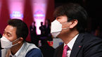 [OSEN=조은정 기자]28일 오후 서울 청담 리베라호텔 베르사이유홀에서 ‘2022 KOVO 여자부 외국인선수 드래프트’가 열렸다.3순위 흥국생명 권순찬 감독을 비롯한 관계자들이 옐레나의 인터뷰를 지켜보고 있다. 2022.04.28 /cej@os